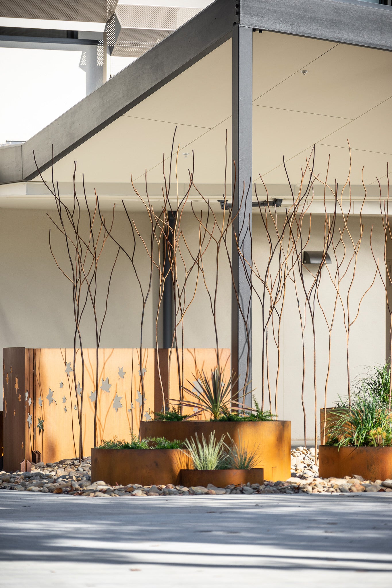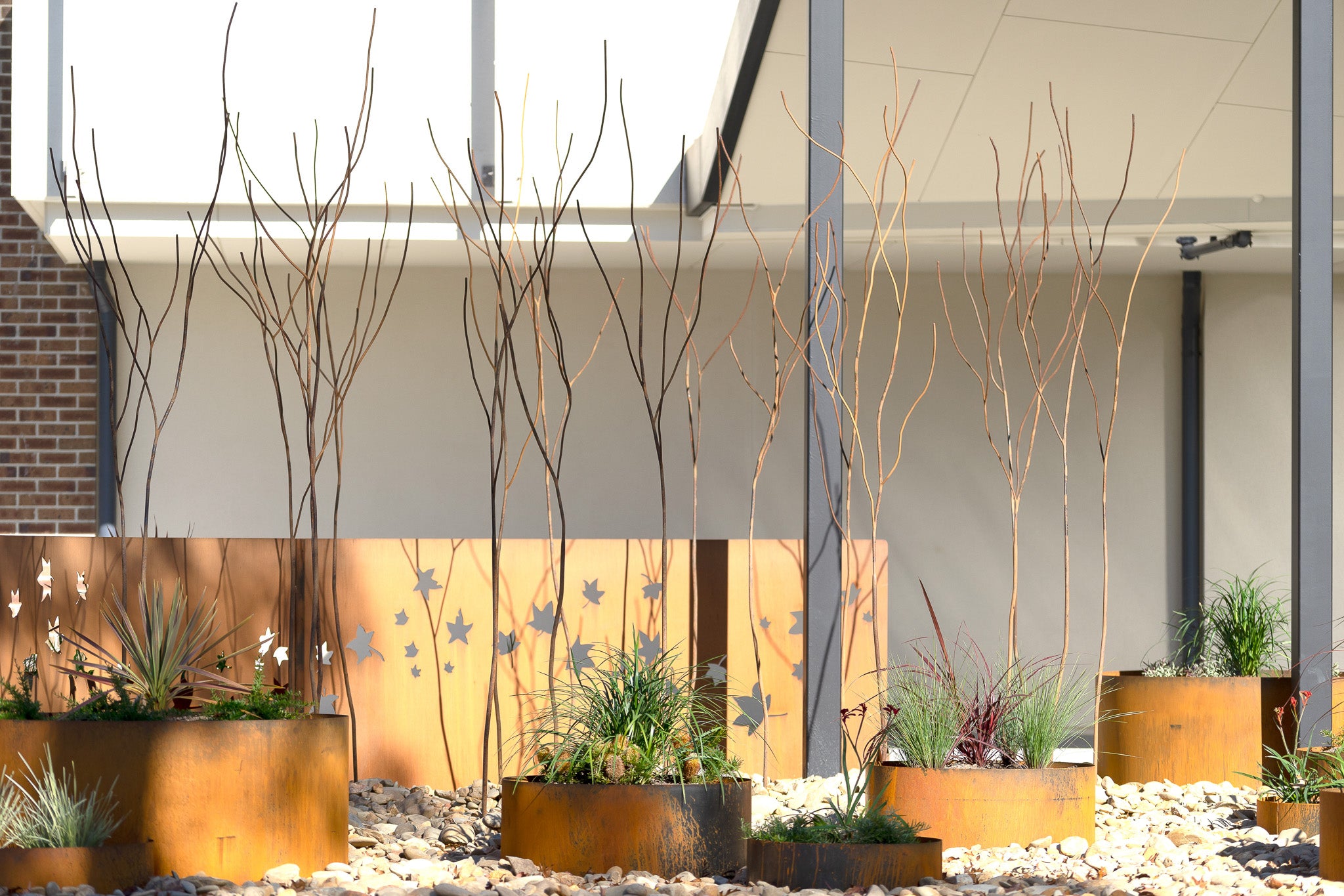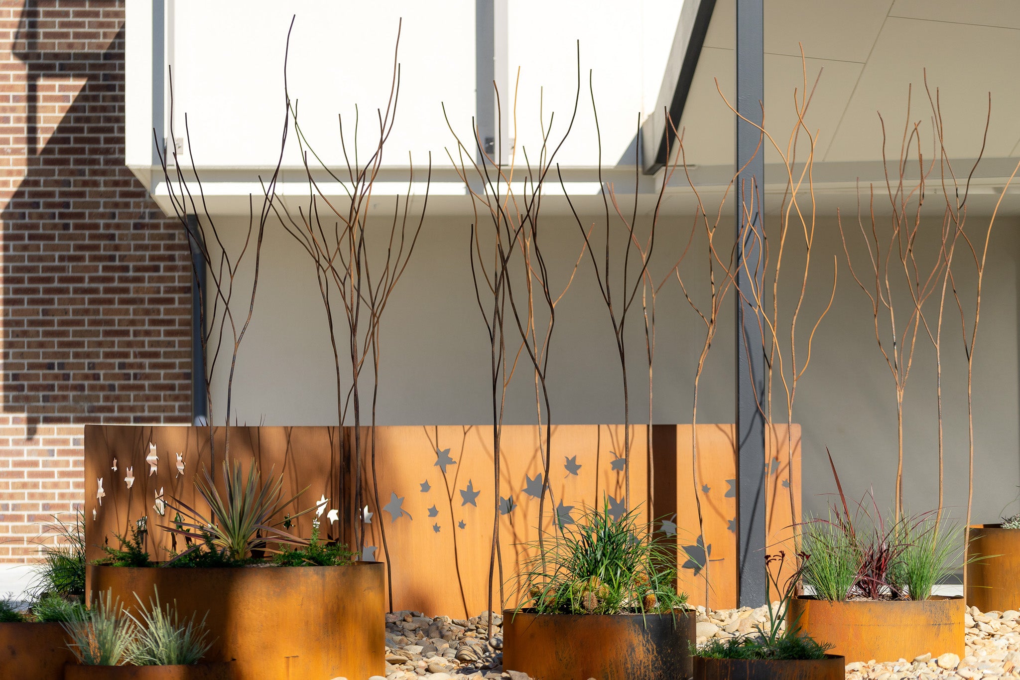 Product • Custom Curved Liquid Amber Screen, Custom Planters