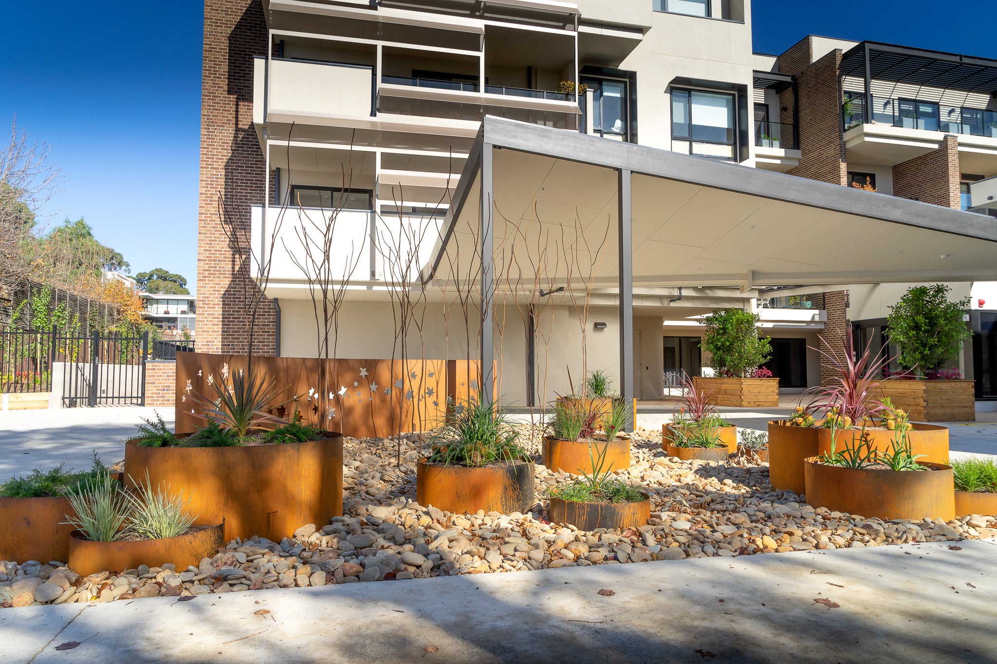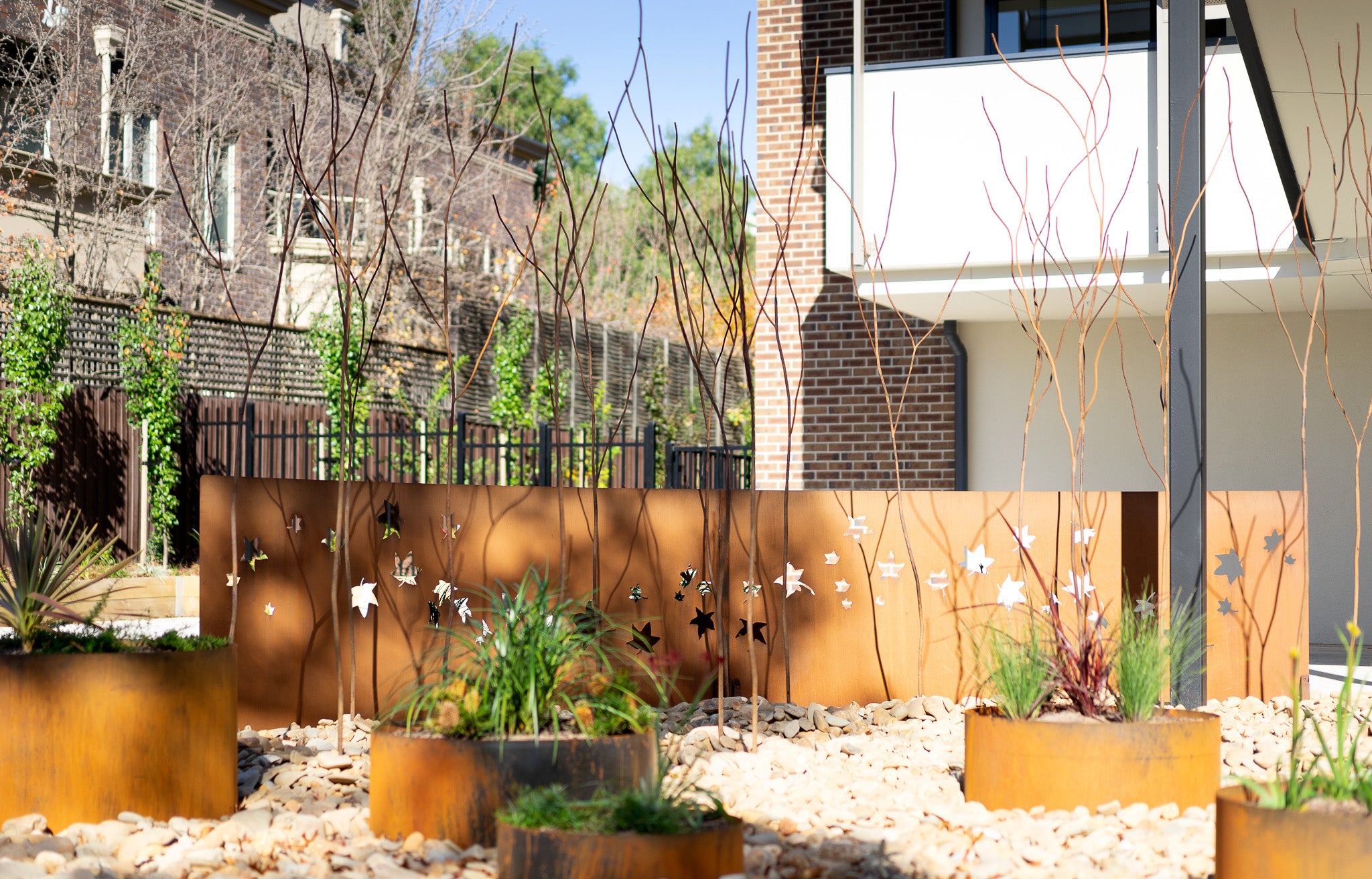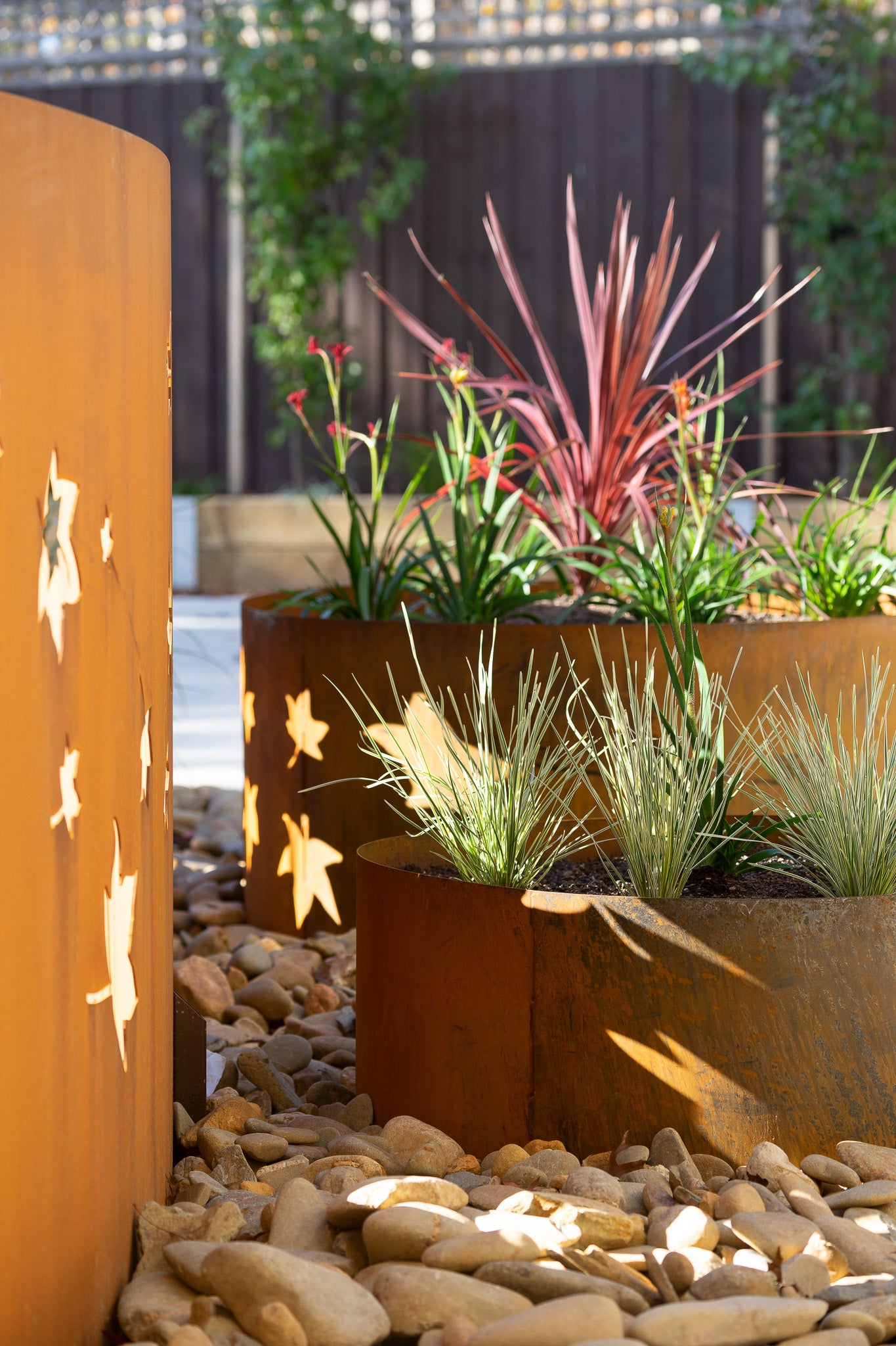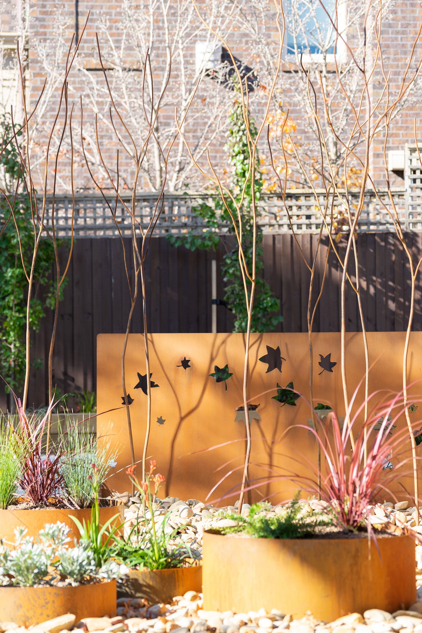 Product • Custom Curved Liquid Amber Screen, Custom Planters
