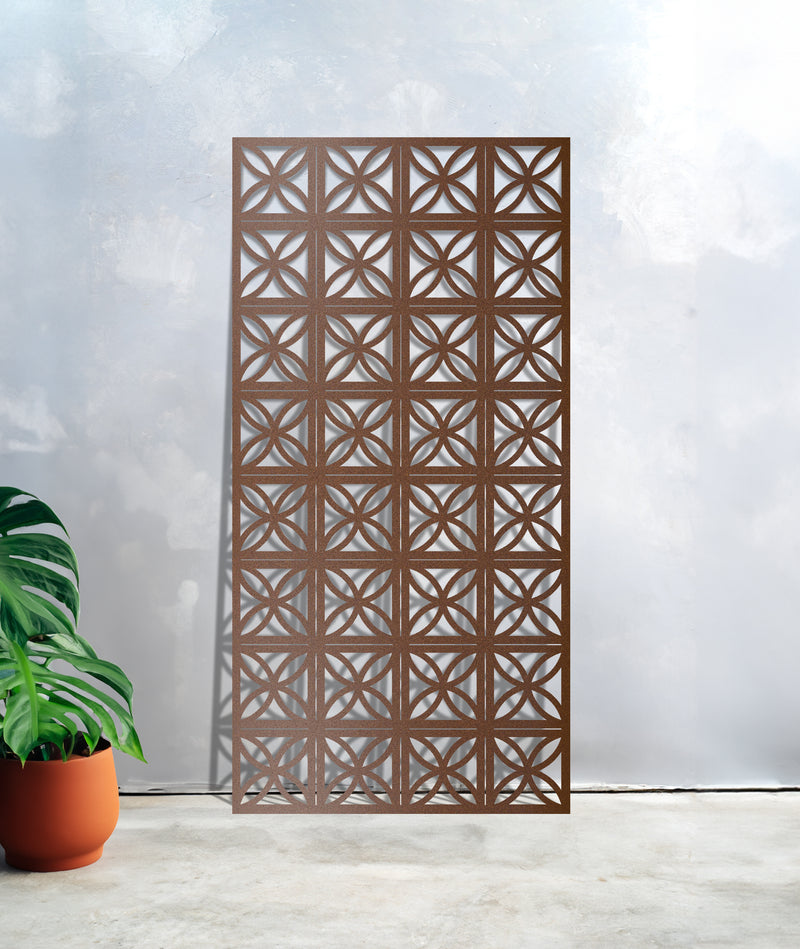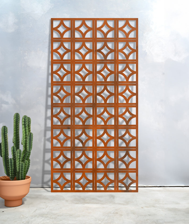 Reminiscent of the architectural motifs popularised in the mid-20th century, the "Star" Breeze Block decorative garden screen by Entanglements Metal Art will add a touch of retro charm to any setting. Its geometric precision and intricate interplay of shapes create a visually striking focal point that enhances privacy while allowing a gentle breeze to pass through. It's calming and tranquil and can add some style to your indoor or outdoor area.