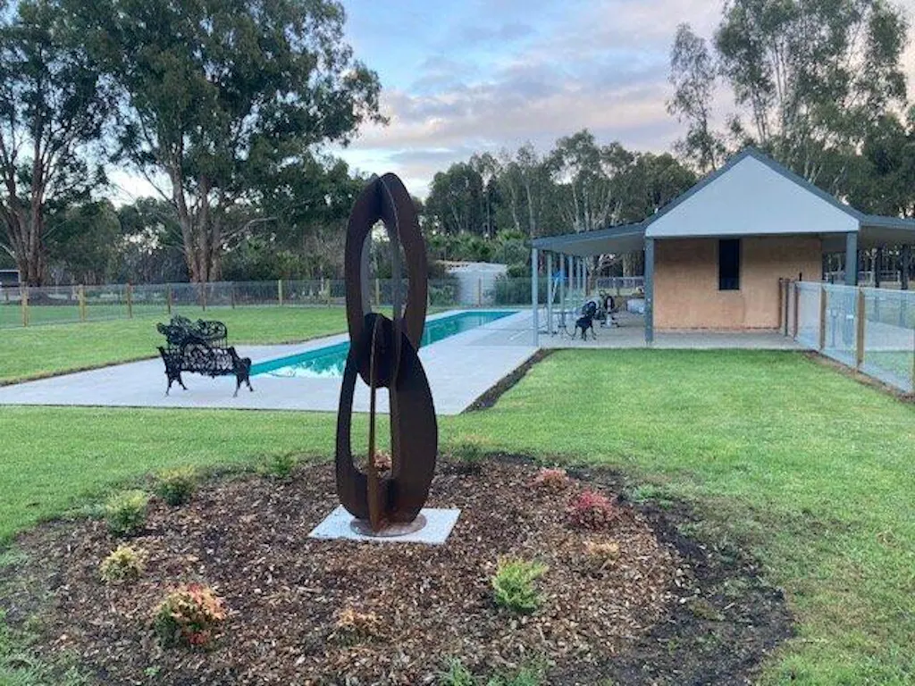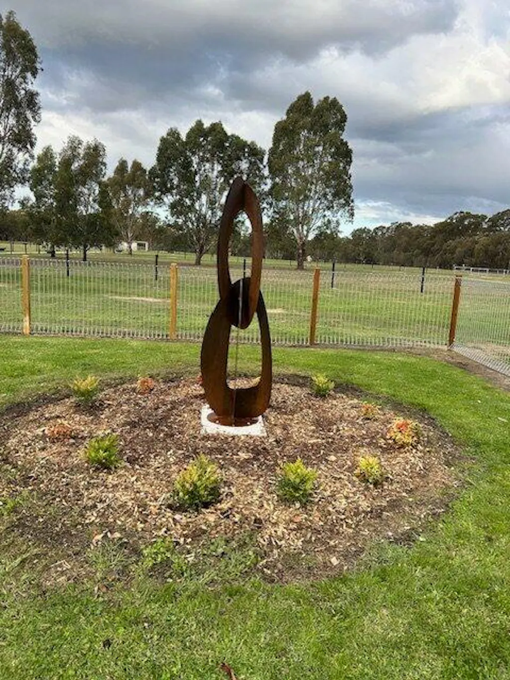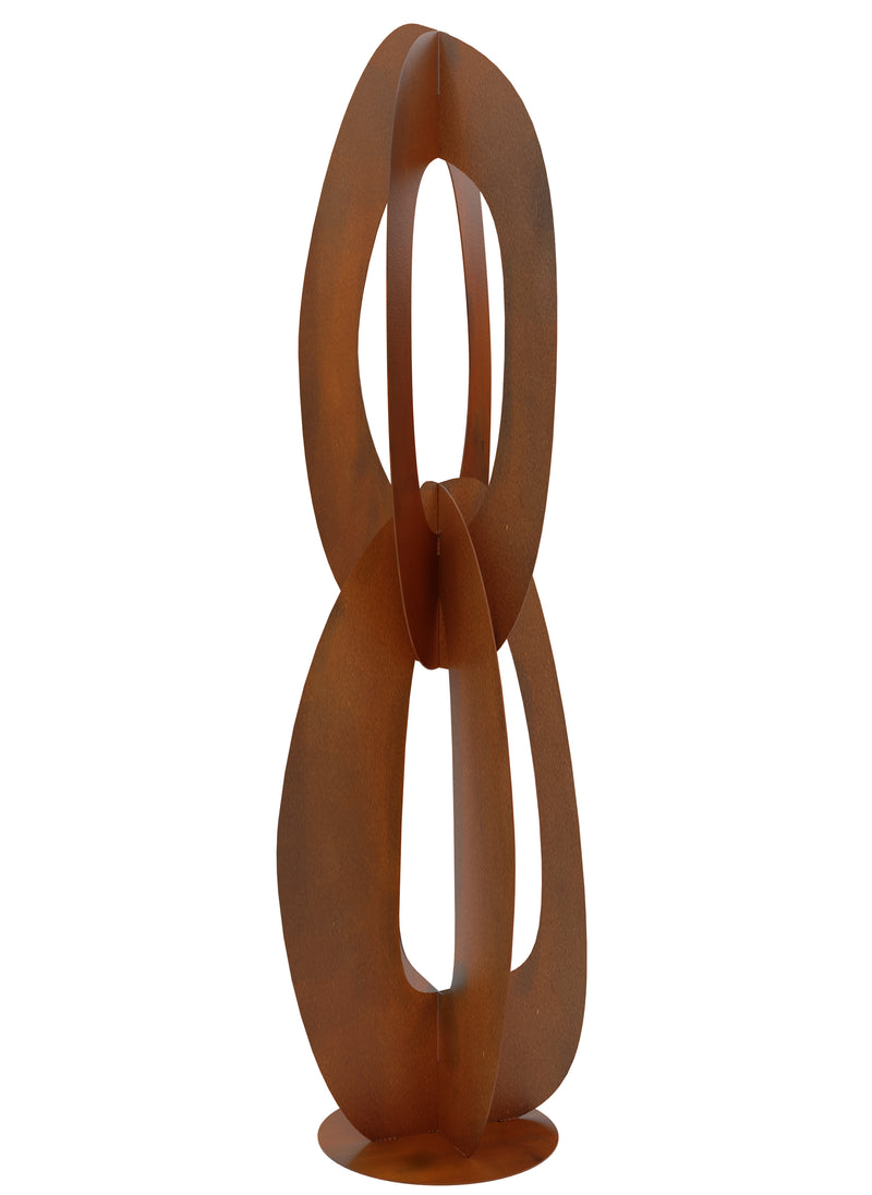 The Chain Sculpture is a bold 3D artwork inspired by mid-century design, symbolising family connection through a series of interlinked forms. Crafted in Melbourne from 3mm thick rusty steel, its abstract totem style suits both traditional and native landscape gardens.
