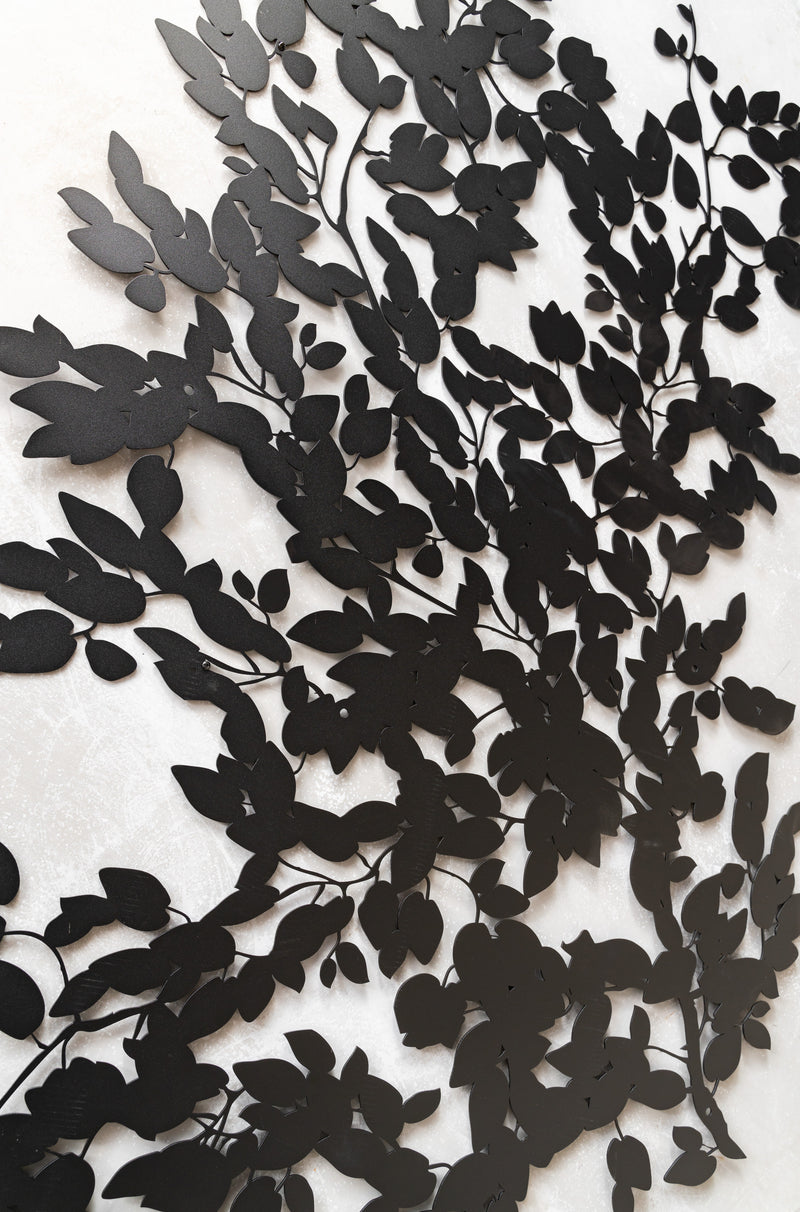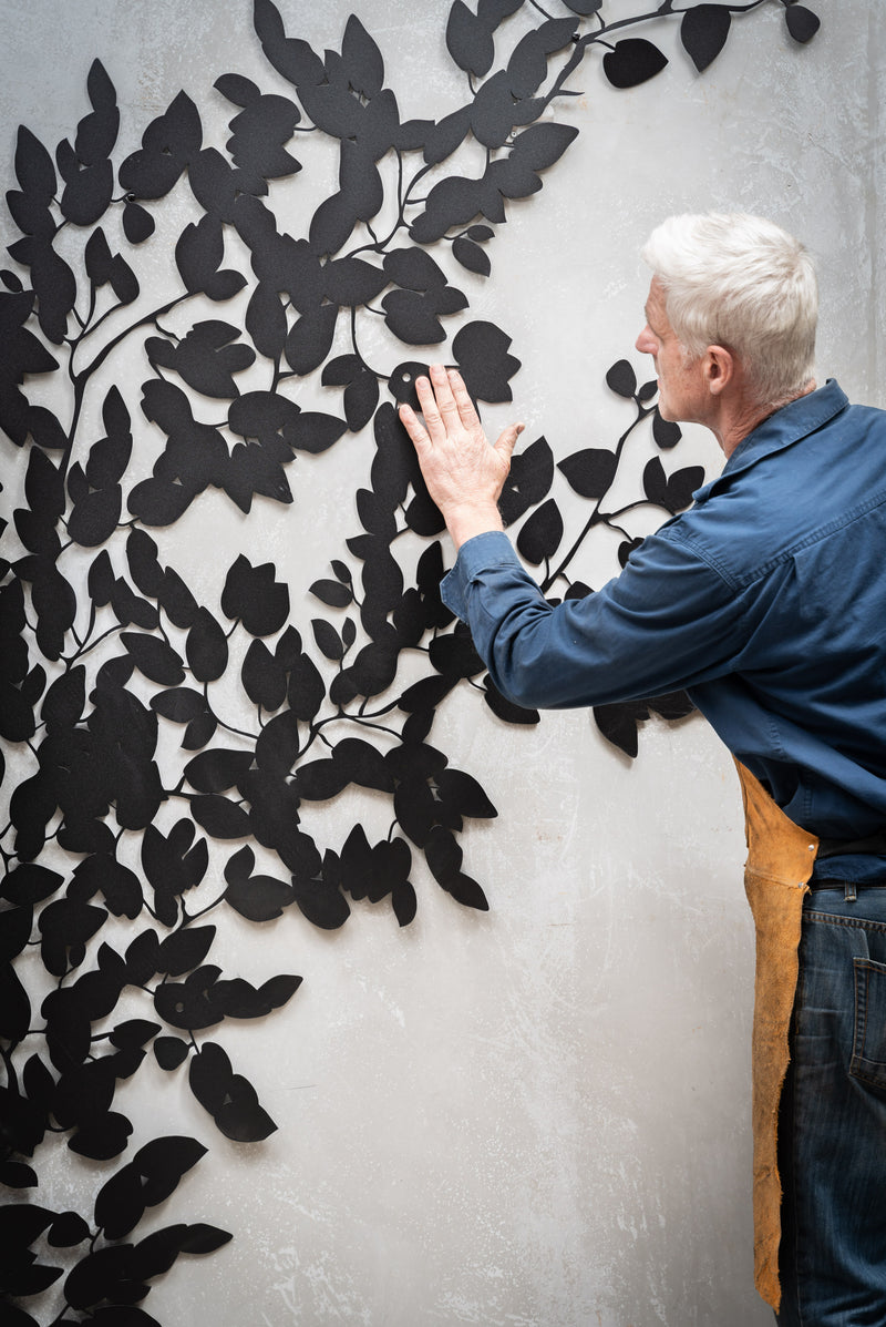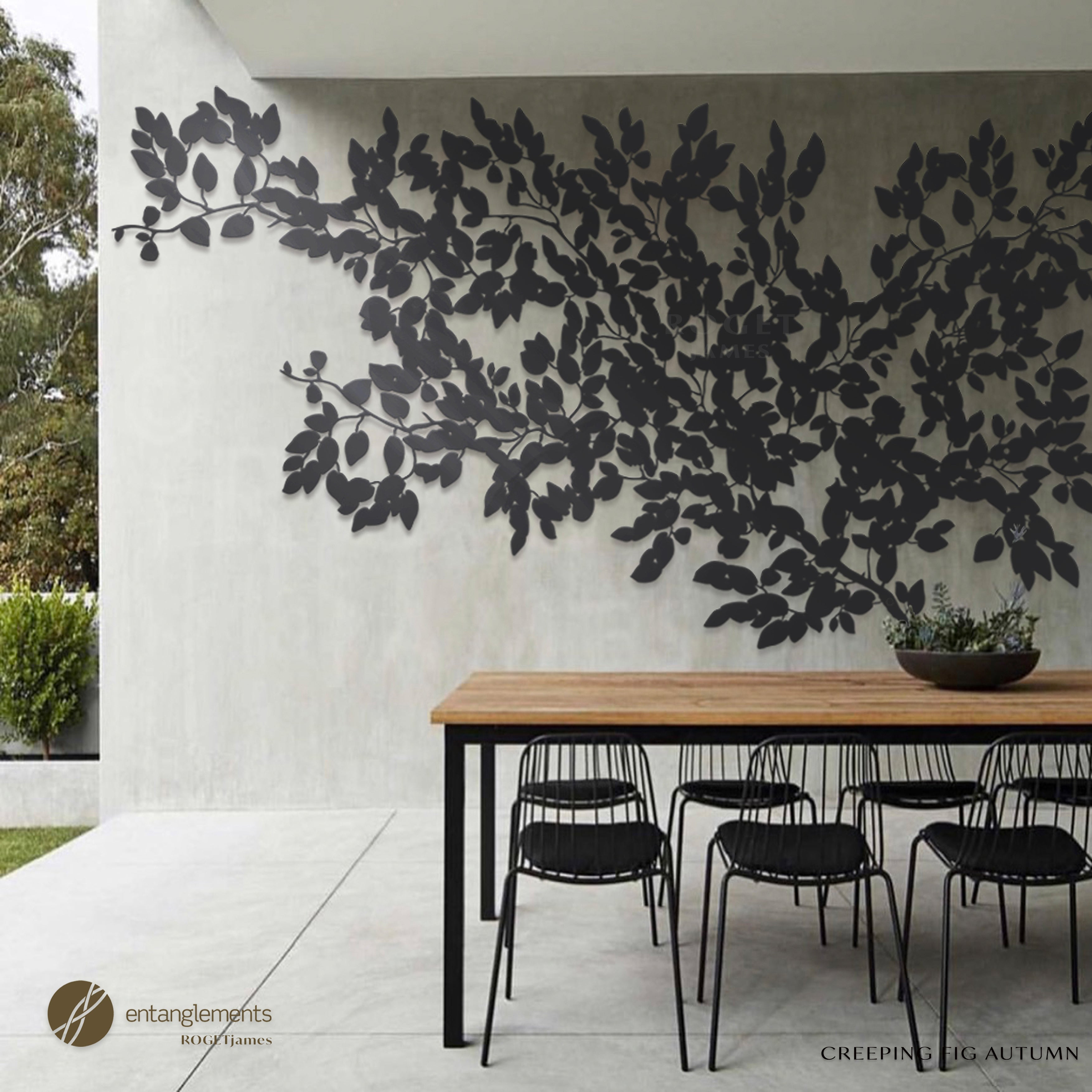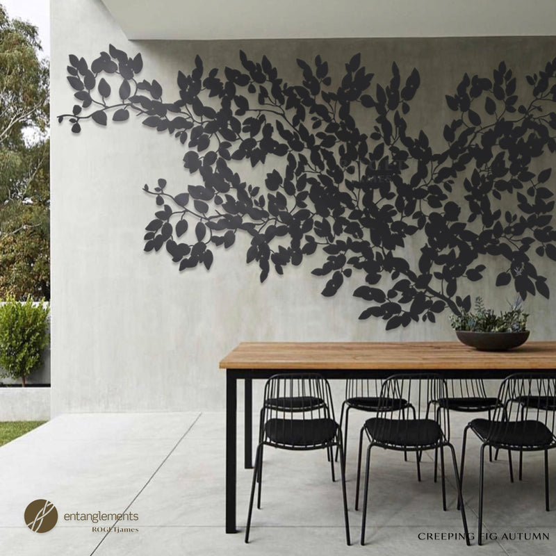 Introducing "Creeping Fig," an exquisite piece of outdoor metal wall art born from the creative collaboration between Entanglements and Roget James. Inspired by the natural beauty of creeping fig vines, this stunning design brings organic elegance to any outdoor space.