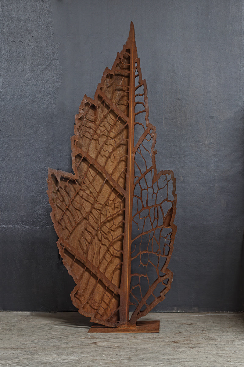 Elevate your outdoor decor with the Entanglements Double Leaves Fold Sculpture – a graceful piece of garden art inspired by the delicate structure of leaf skeletons found on peaceful walks in nature.