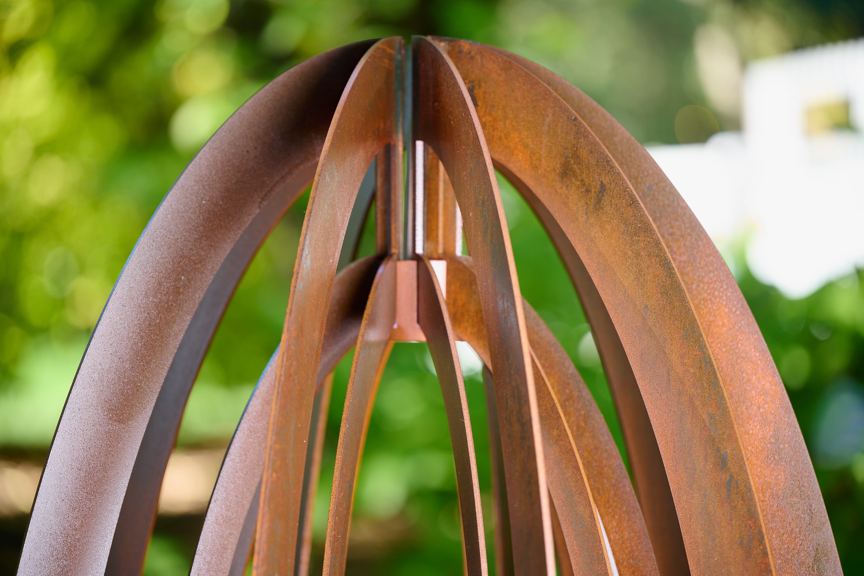 The Egg Sculpture is a striking fusion of the familiar and the otherworldly. Crafted from precision laser-cut blades, its symmetrical, alien-like form draws the eye and sparks curiosity. It's imposing size makes a bold statement as a standalone feature or within a curated collection. Its design suits both contemporary interiors and outdoor settings, casting intricate shadows as light moves across its surface. More than just a decorative piece, the Egg Sculpture invites contemplation and adds a sense of intrigue to any space.