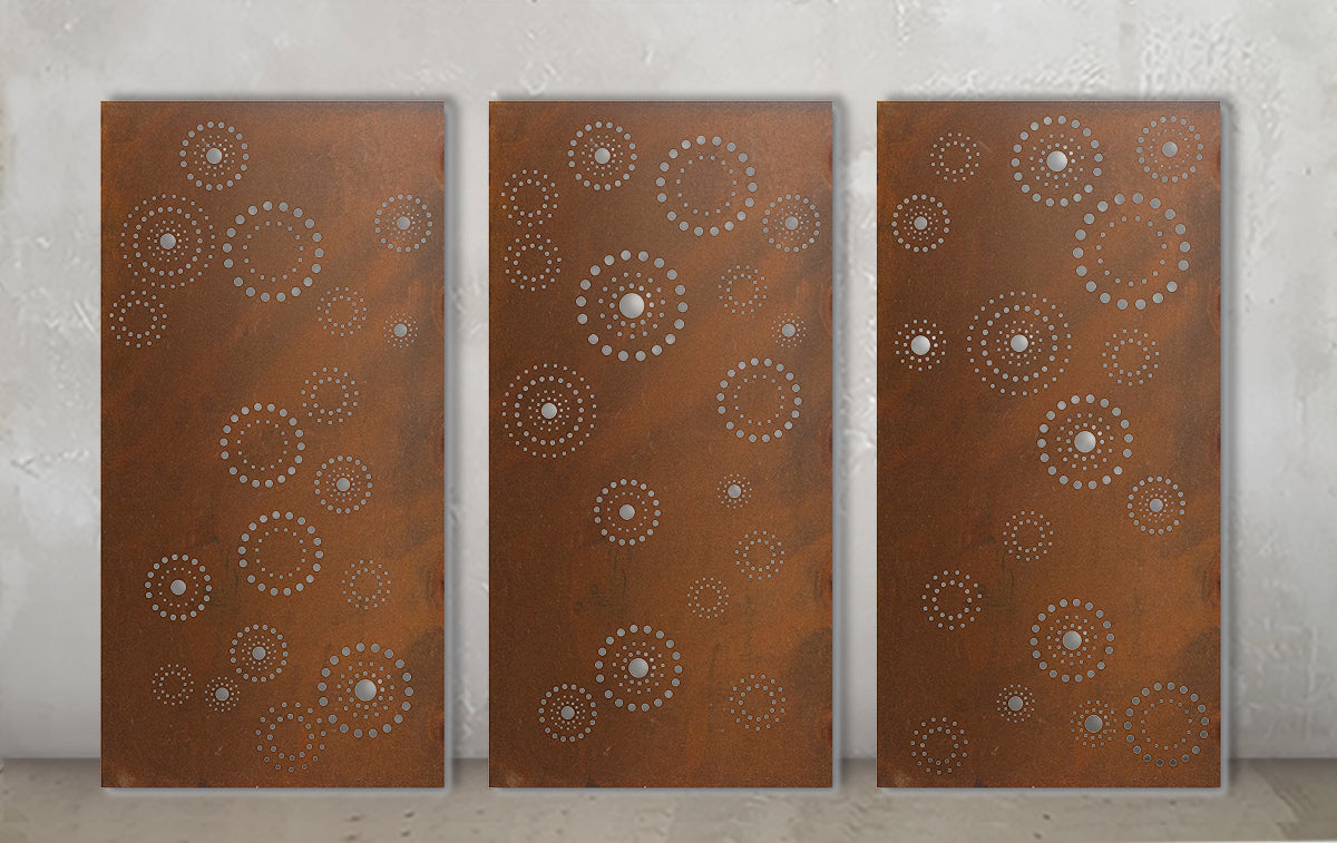 - 2mm Mild Steel with a natural rust finish or Aluminium with a powder coated finish