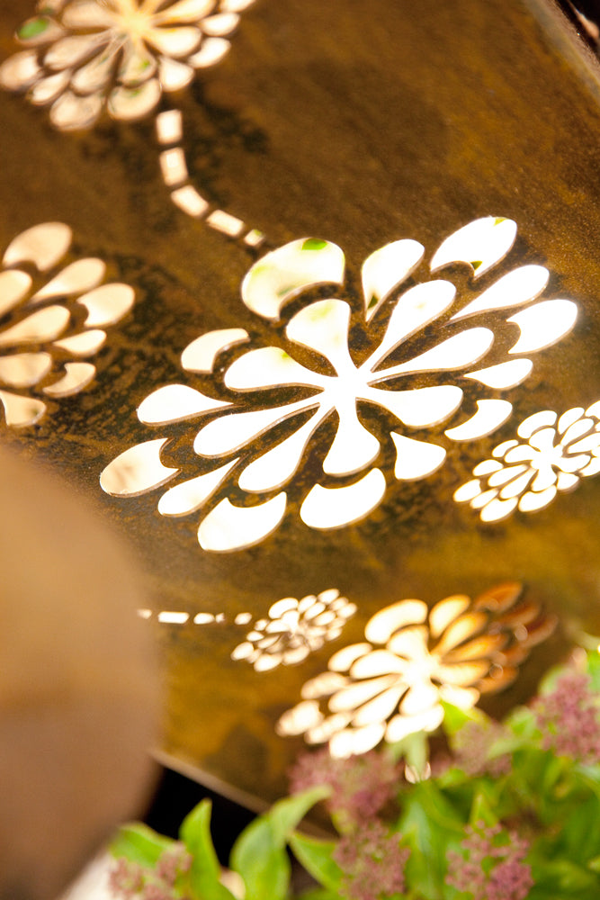 This inspiring sculpture is one of our favourites, and is absolutely perfect for any outdoor or indoor space. We love how it looks with lights underneath, illuminating the engraved flowers with soft light.