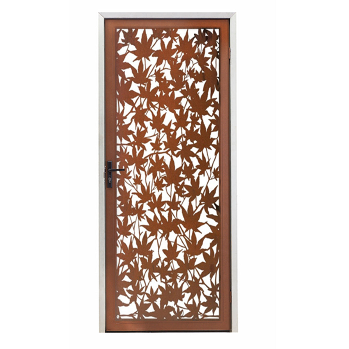 Our "Foliage" security screen door is a calming piece reminiscent of Autumn and falling leaves. Our signature natural rust finish accentuates that feel with its red hues and tones. And, if the rustic metal art finish isn't for you, we have a variety of powder coated aluminium finishes available to suit your space.