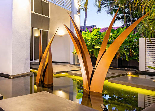 Bold and expressive, our Grass Blade Sculpture captures the graceful movement of native grasses swaying in the wind. A striking piece of outdoor sculpture, it adds strength, energy and a wild elegance to any landscape design.