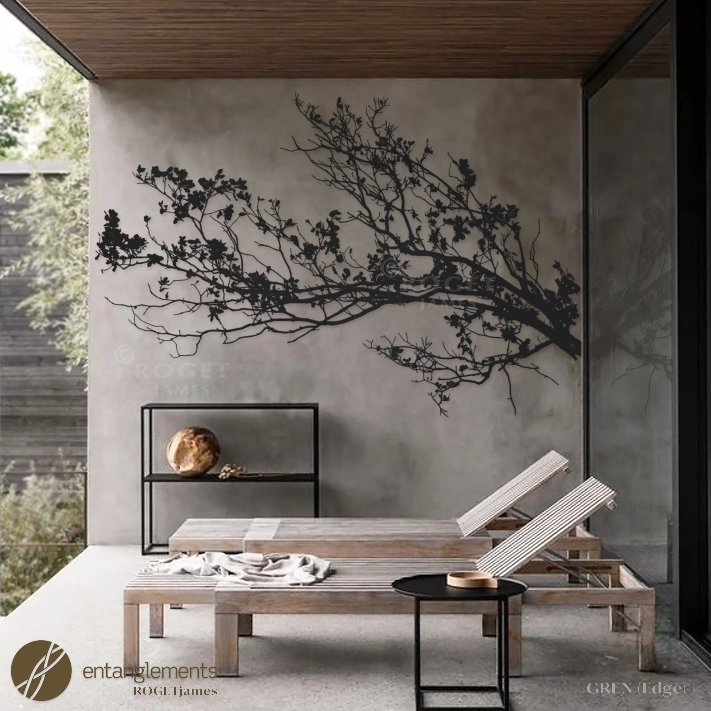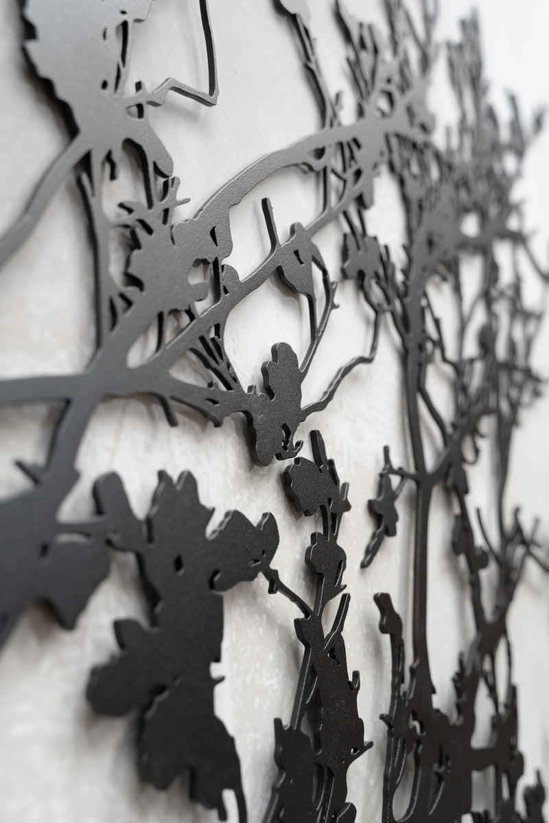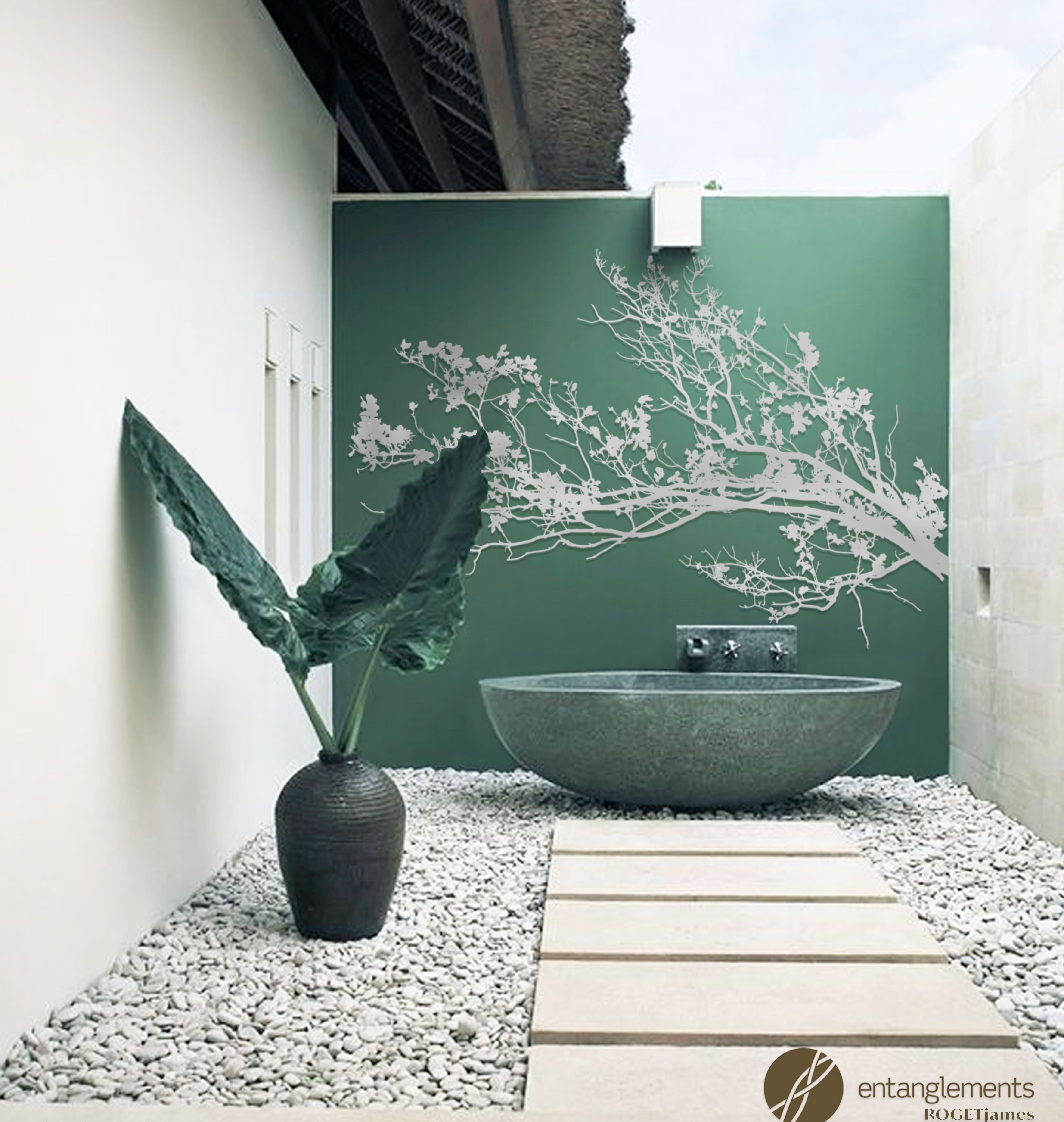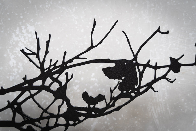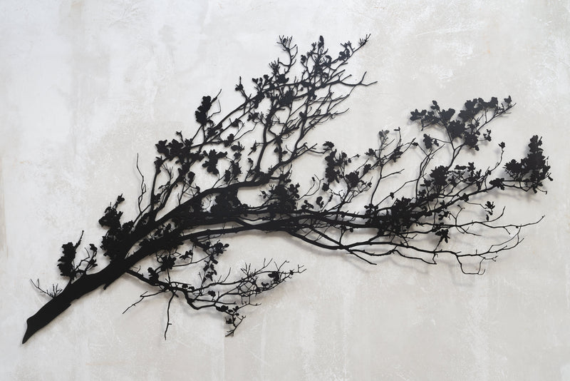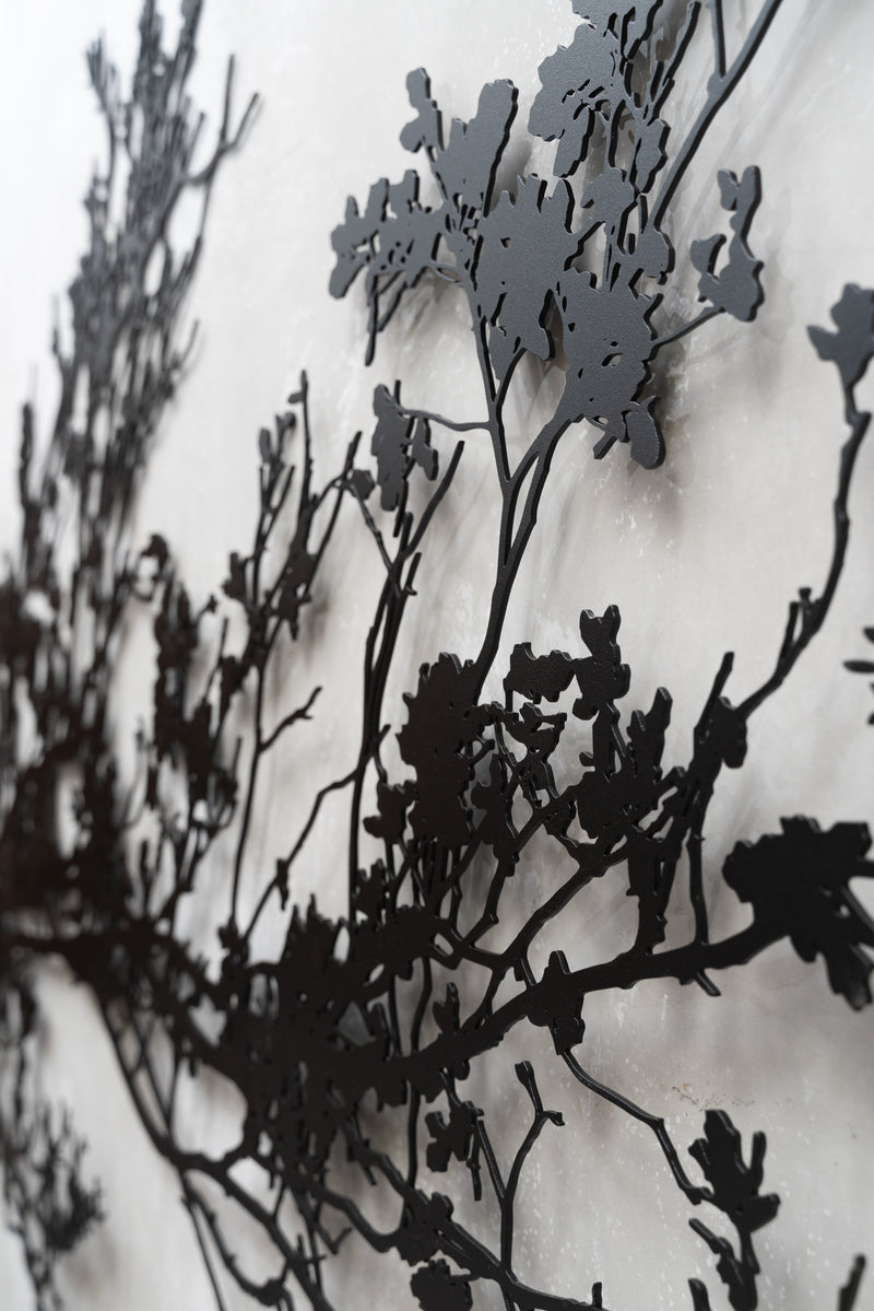 Introducing "Gren," a captivating addition to your outdoor space. Crafted through a unique collaboration between Entanglements Metal Art and Roget James, this stunning piece of outdoor wall art is inspired by the ephemeral beauty of cherry blossom branches in bloom, capturing the essence of nature's fleeting elegance.