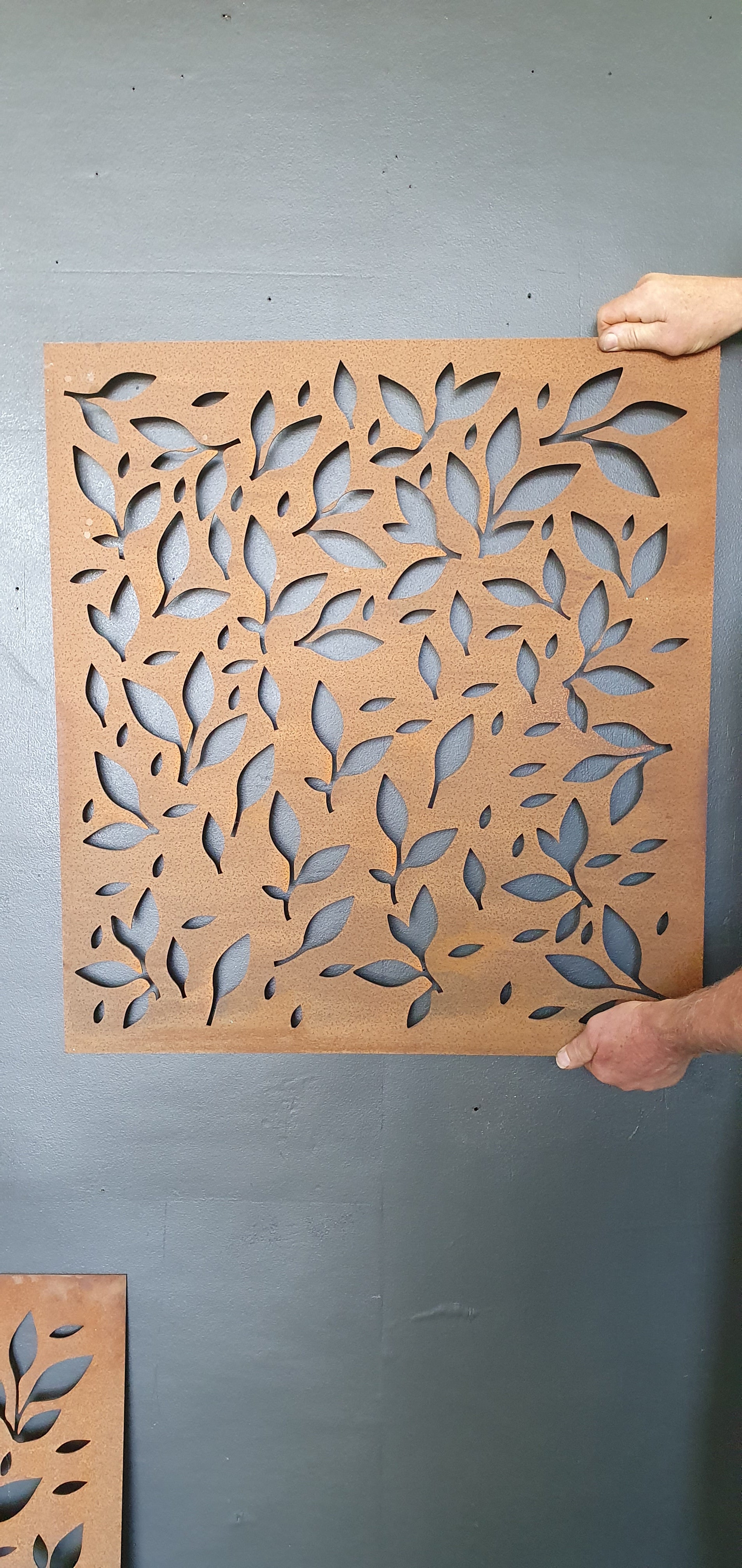 This screen is inspired by nature and the wilderness, depicting a calm forest which can be mounted to your indoor or outdoor areas for that special feature piece you've been looking for. Available in both a natural rust finish or a powder coated finish.