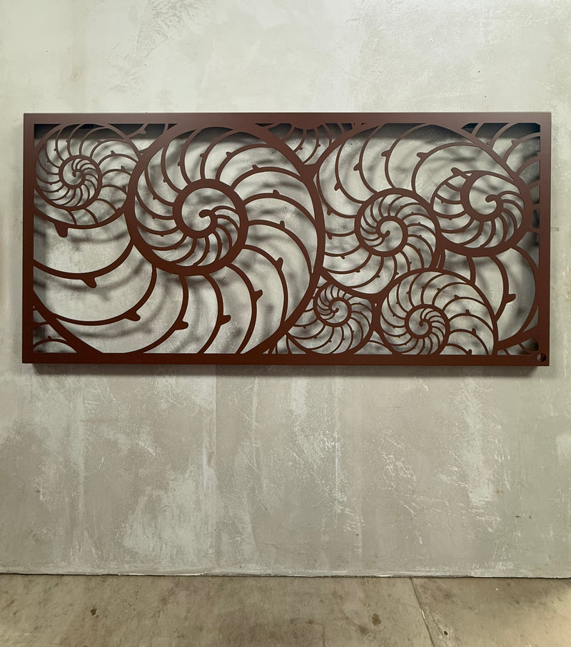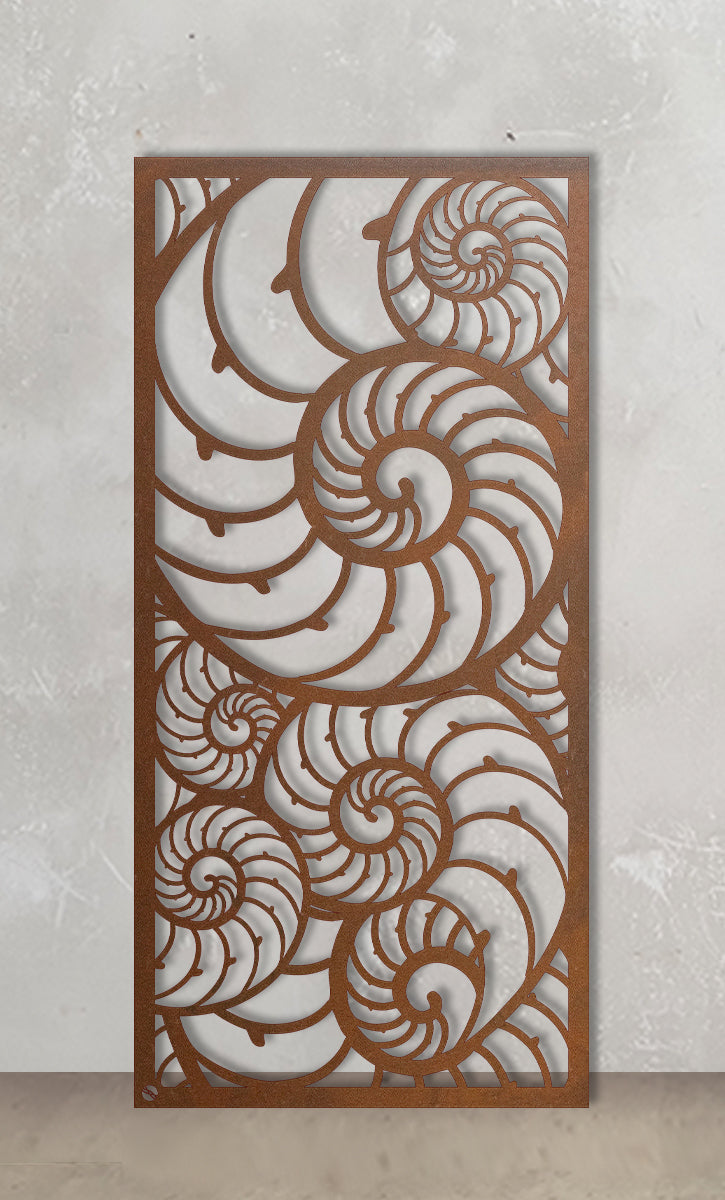 Crafted from high-quality metal, this outdoor wall art is designed to withstand the elements, developing a striking natural rust patina over time or available in a powder-coated finish for a sleek, modern look. Whether mounted indoors as a statement piece or outdoors to complement your garden, patio, or poolside area, the flowing nautilus design adds depth, movement, and organic beauty.