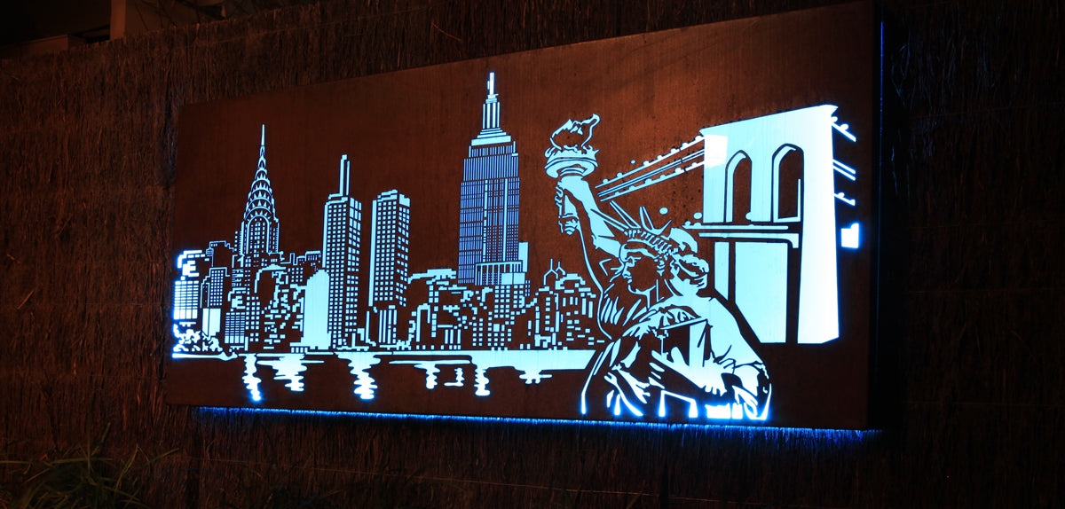 Whether displayed indoors or as outdoor art in your garden, this unique wall art adds a contemporary, urban touch to your home. Enhance its dramatic silhouette with LED backlighting to recreate the electrifying energy of New York’s iconic skyline after dark.