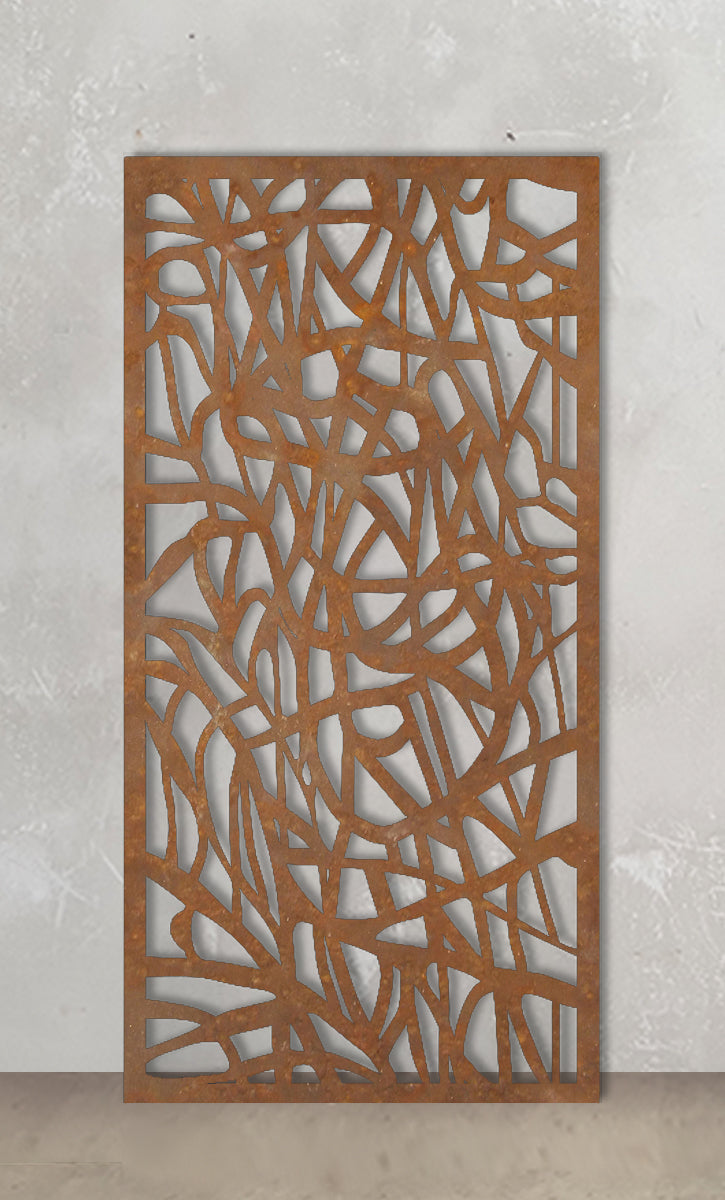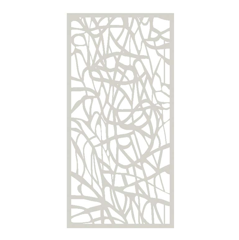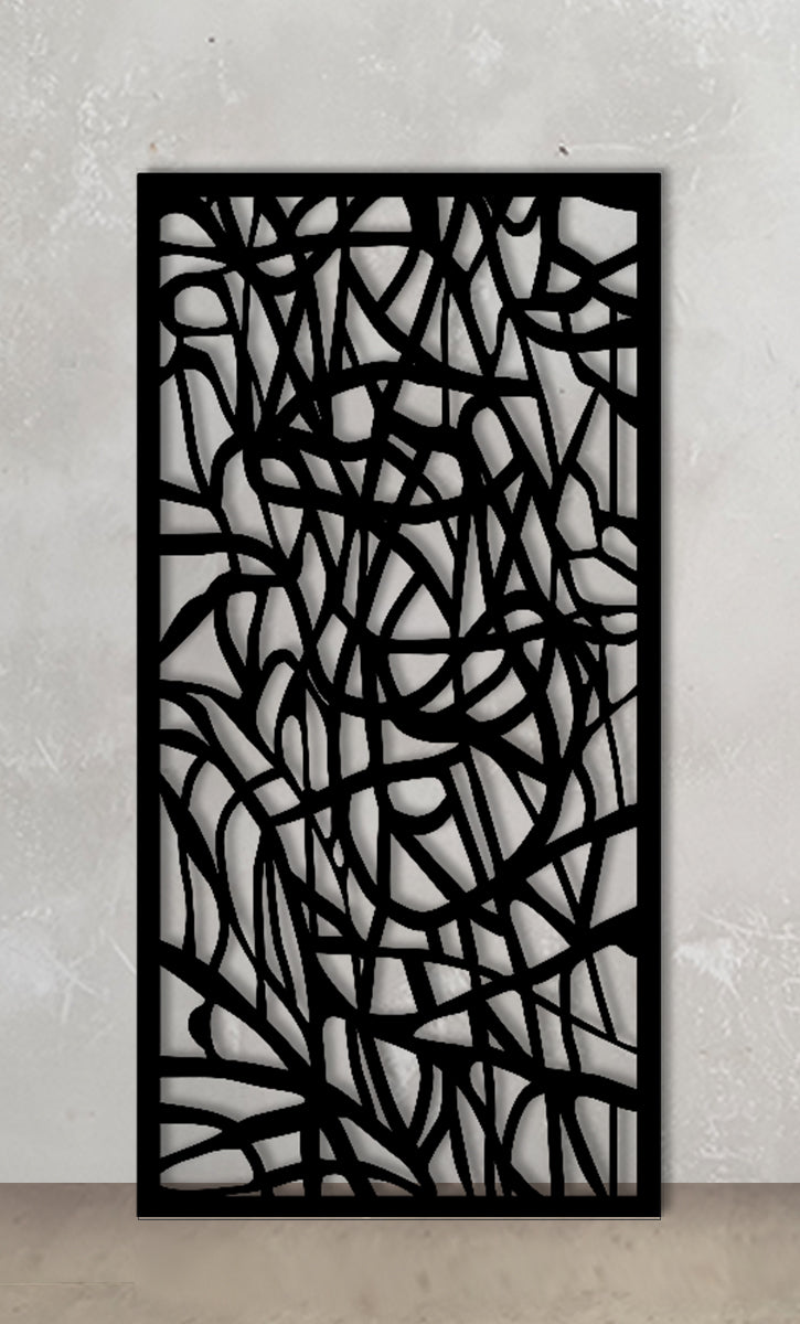This screen features a timeless, abstract design. The organic and natural geometry and lines create a soothing feel that ties into areas perfectly. Mount it indoors or outdoors for some extra style and class.