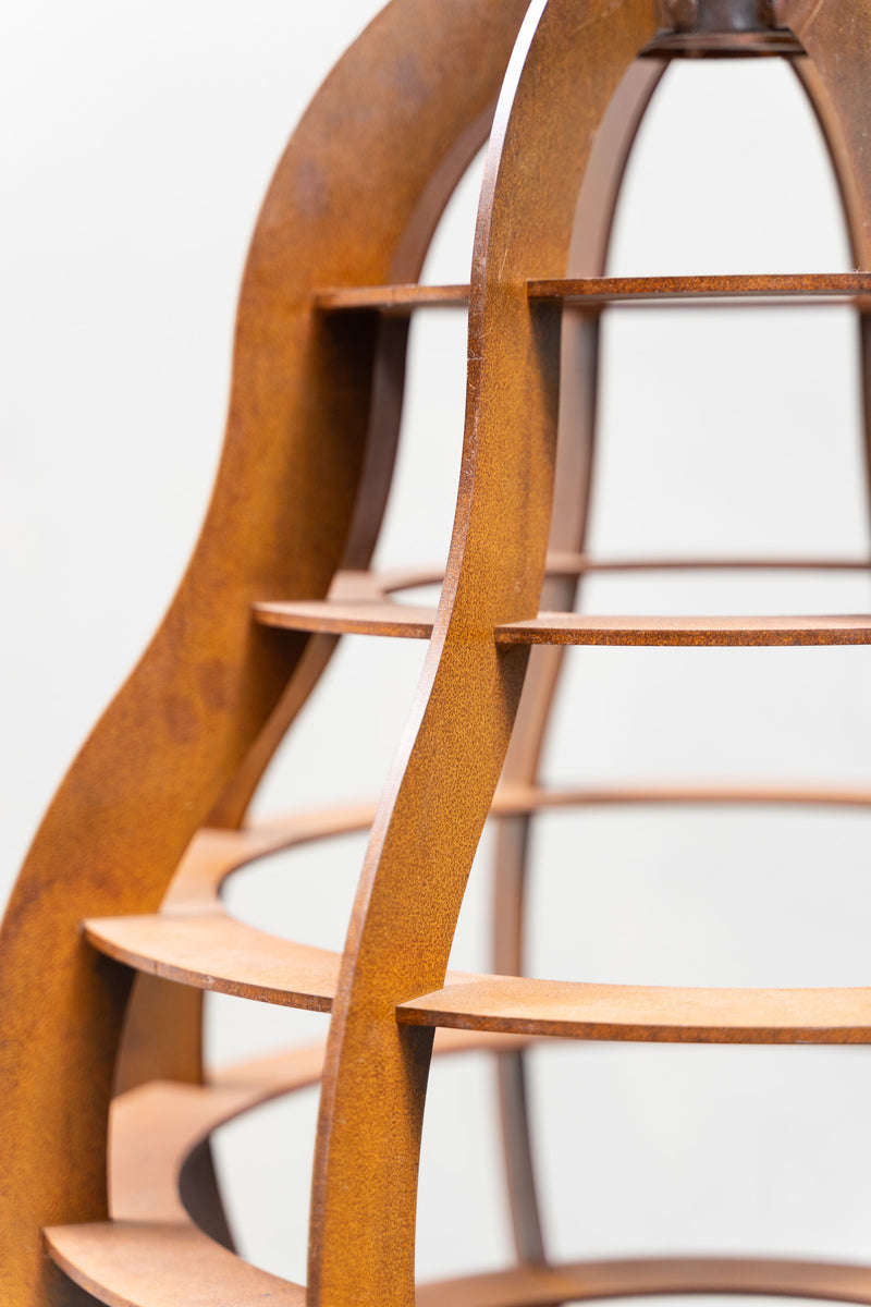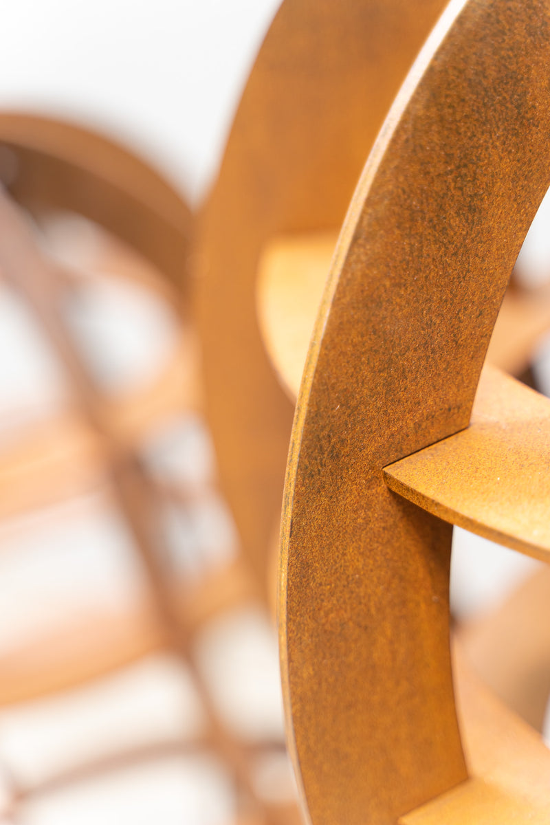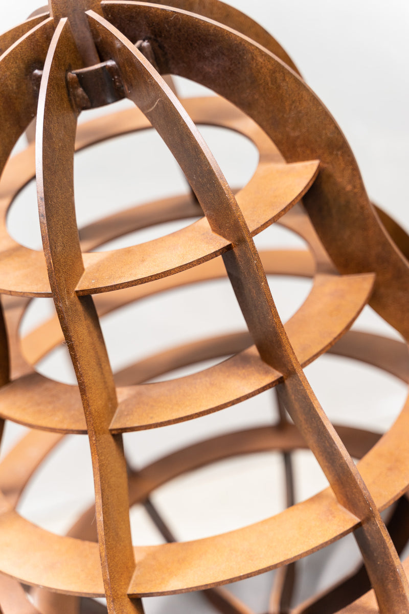 Made from sturdy 5mm steel, this sculpture is designed with interlocking puzzle-like elements that create a captivating 3D effect. With a rust finish that has been sealed with a Penetrol application, you can be sure that this sculpture is built to last. Measuring approximately 550mm in diameter and 950mm in height, this piece is a great size for making a statement in any space. And if you need something even larger, we offer a larger size option that measures 900mm in diameter and 1500mm in height.