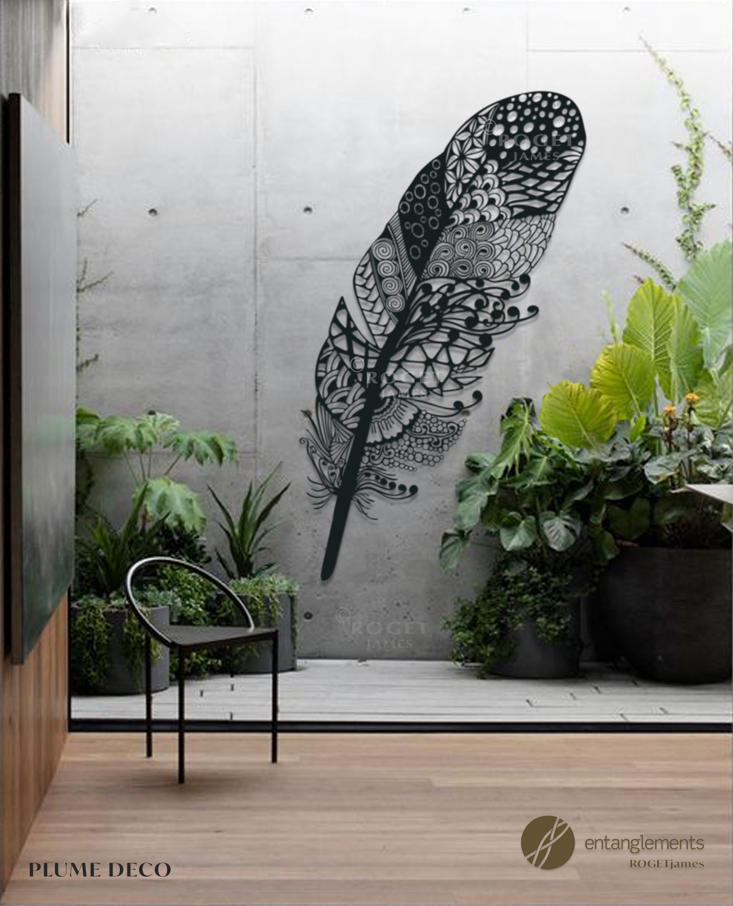 Introducing the "Plume Deco," a stunning collaboration between James Roget and Entanglements Studio. Crafted from premium 3mm aluminium with a flawless powder coat finish, this metal wall art reimagines the timeless elegance of feathers.