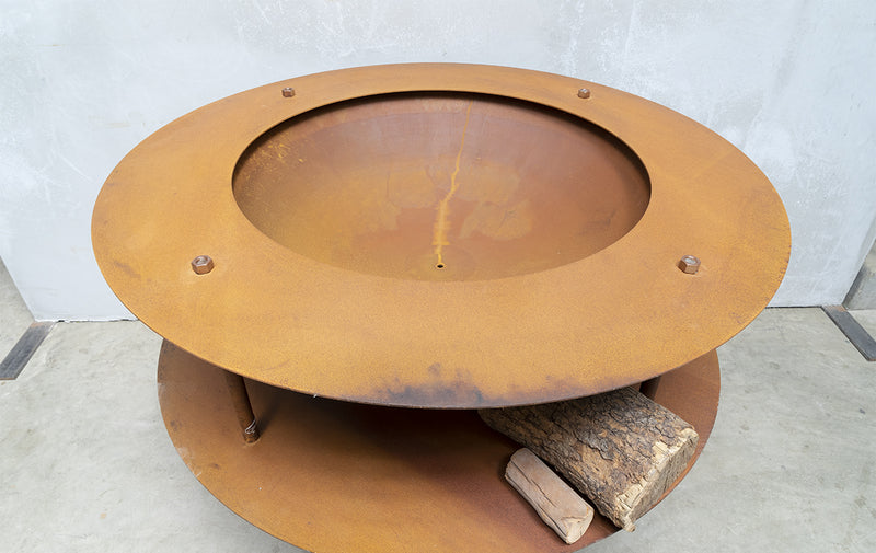 The smaller version of our Melbourne-made Large Wood Store Fire Pit, the Small Wood Store Fire Pit design is the flagship of the Entanglements fire pit collection. Featuring a spacious bowl perfect for warming groups, this fire pit combines functionality with style. The sturdy frame offers both safety and an integrated storage area to keep your wood logs organised and accessible, ensuring you can enjoy a long-lasting fire all night.