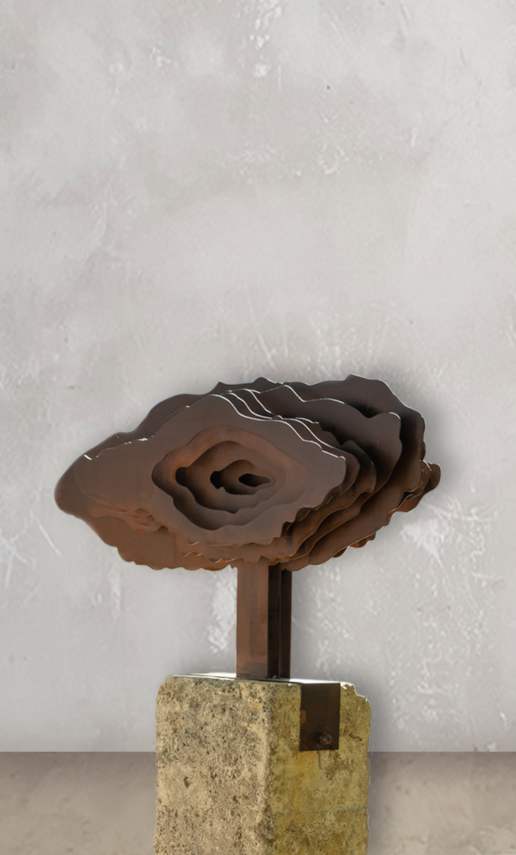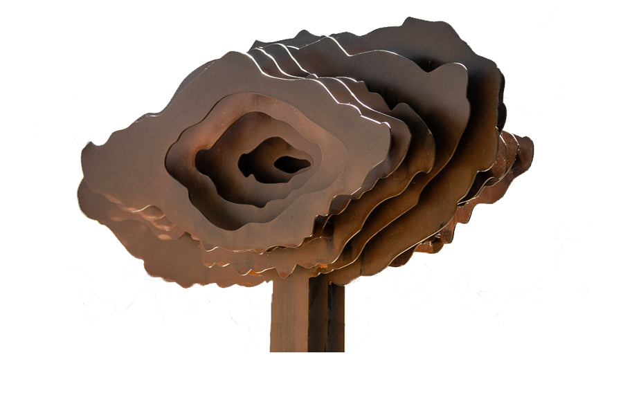 Inspired by the natural forms of tree knots, our Tree Knot sculpture is a bold, architectural garden sculpture crafted from 3mm laser-cut mild steel with a natural rusted finish. Layered with 50mm spacing, it creates a striking 3D effect that adds depth and texture to any garden or landscaping design.