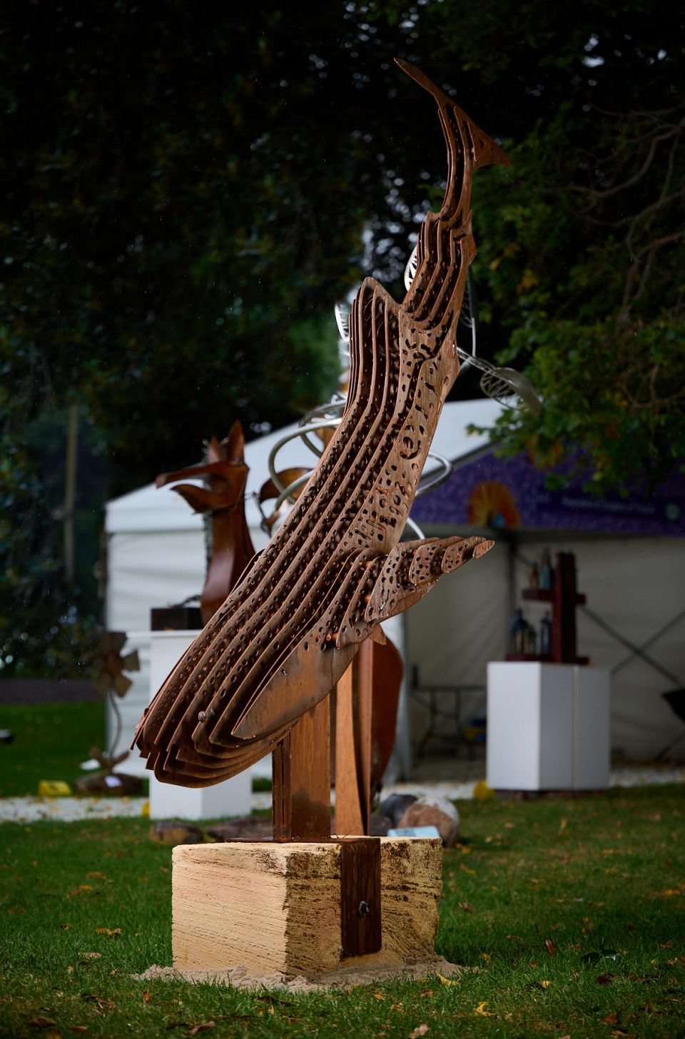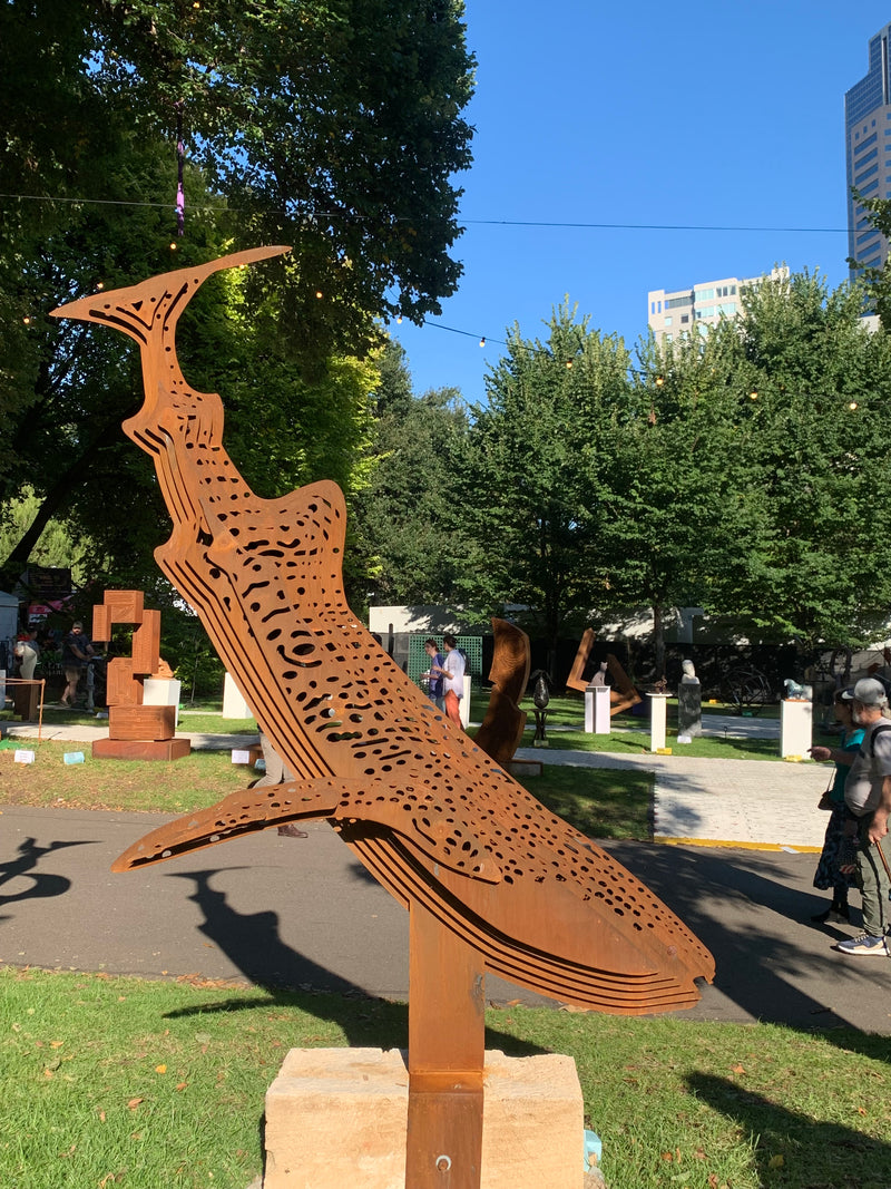 Make a statement with the Whale Shark Sculpture, a stunning tribute to the ocean’s gentle giant. Crafted from 3mm Corten steel, its layered 3D form captures the graceful motion of the whale shark in striking detail.
